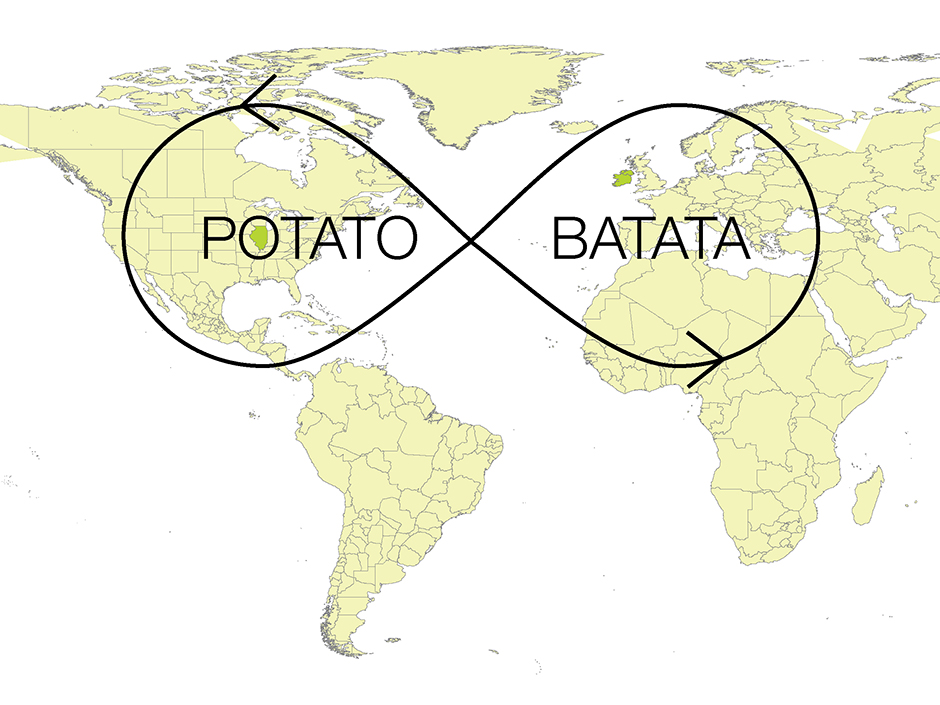 A series of reciprocal AGRI+CULTURAL events frame a participatory work by Irish artist Deirdre O’Mahony + Chicago artist Frances Whitehead, based on the pan-atlantic diaspora of new world tubers, the potato Solanum tuberosum and the sweet potato Ipomoea batatas.