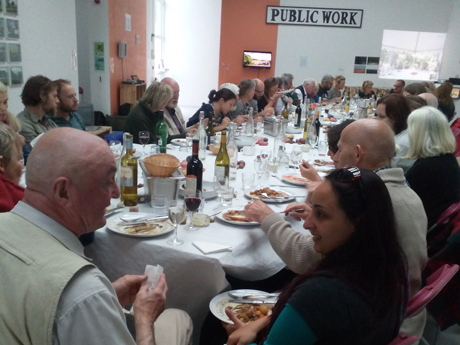 A performance in time and space, the core of the work consists of simultaneous parmentiers or potato tastings, linked by telepresence –food + conversation about creativity and food futures. A mirrored pair of tuber plantings in the Miller community of Gary, Indiana, US, and in the Burren, Ireland, each containing the two important tubers, serve as backdrop for the events, and stand in agri+cultural solidarity with tuber growers and eaters everywhere. These events are held in concert with the ART, FOOD SECURITY + CLIMATE CHANGE symposium and exhibition at the Burren College of Art, Ireland. The symposium, exhibition, and the tastings are funded by the Green Foundation Ireland.