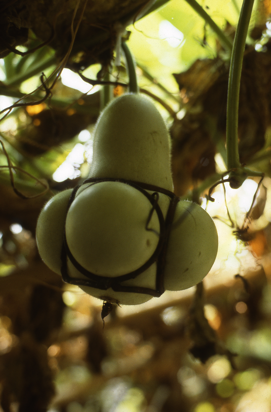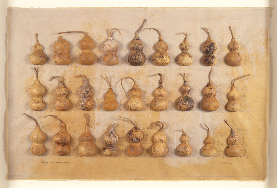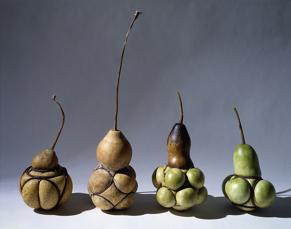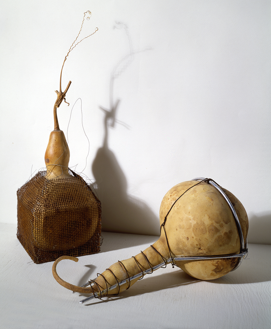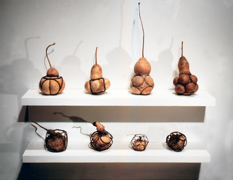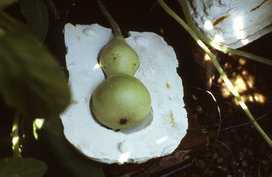 Using historical and experimental techniques, gourds were grown into wire cages and plaster moulds producing a series permanent shaped gourd works, referencing themes such as idealization, memory, and regret – both psychological and ecological.