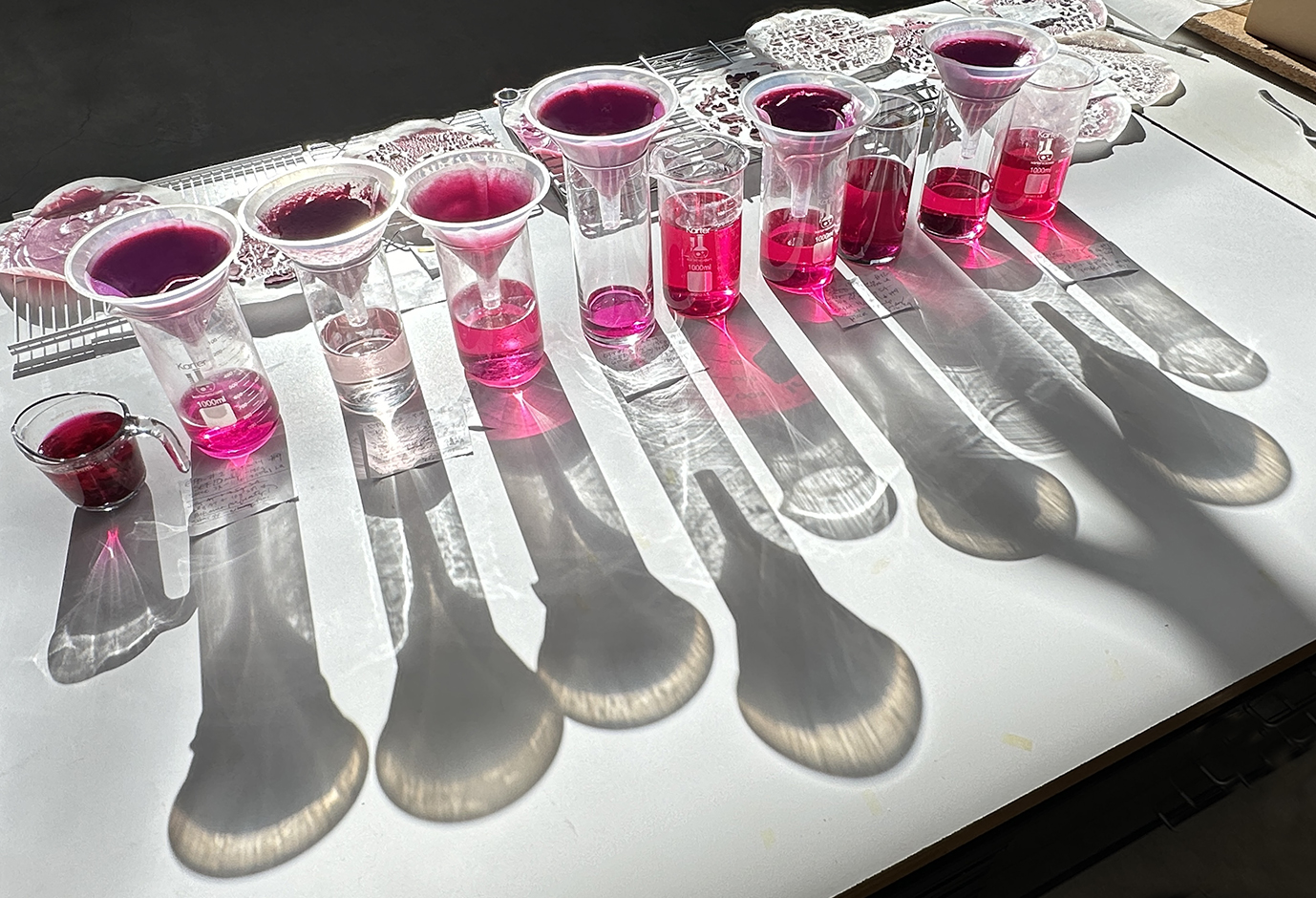 Additionally, two aesthetic and socially engaged research directions draw attention to potential cultural contributions. Food technologists are studying the nutrition of “betalain” pigments from Nopal fruits which inherently carry deep purple/blue color named BeetBlue. Working with plant biotechnologist Carlos Rodríguez López we are exploring the extraction and stabilization of Nopal pigments as an art material.