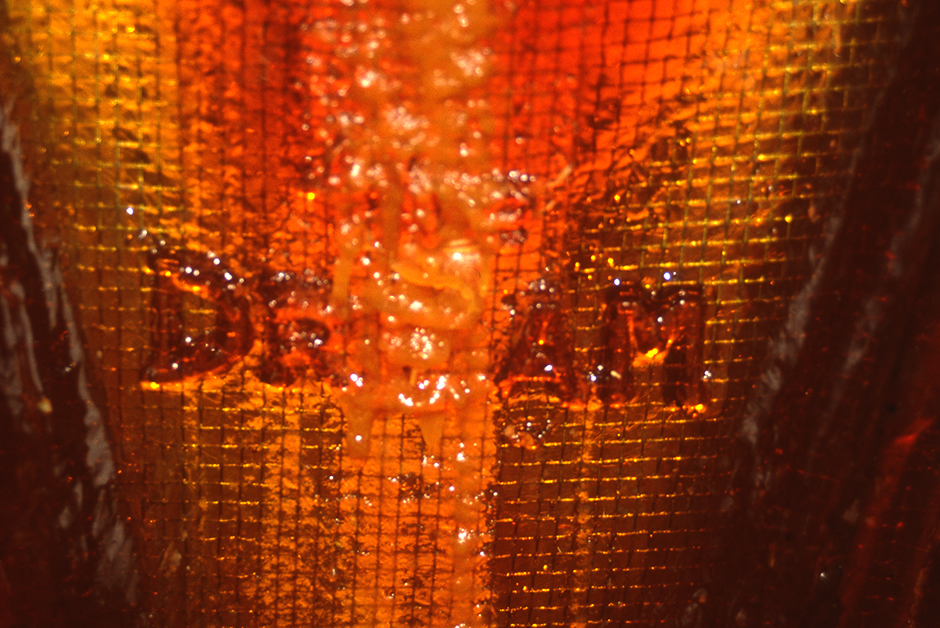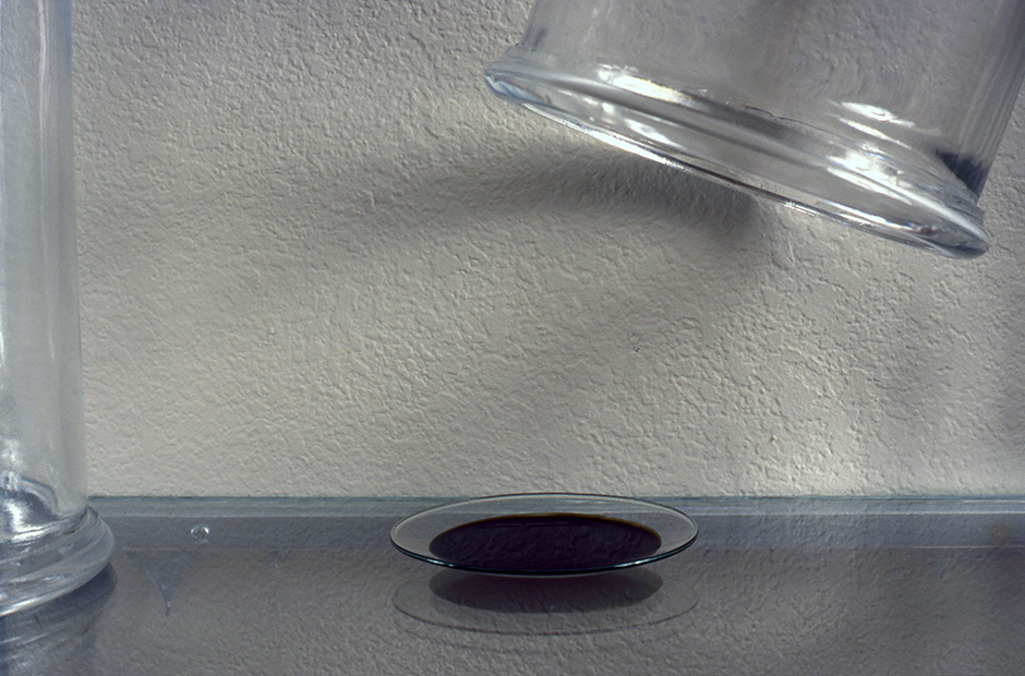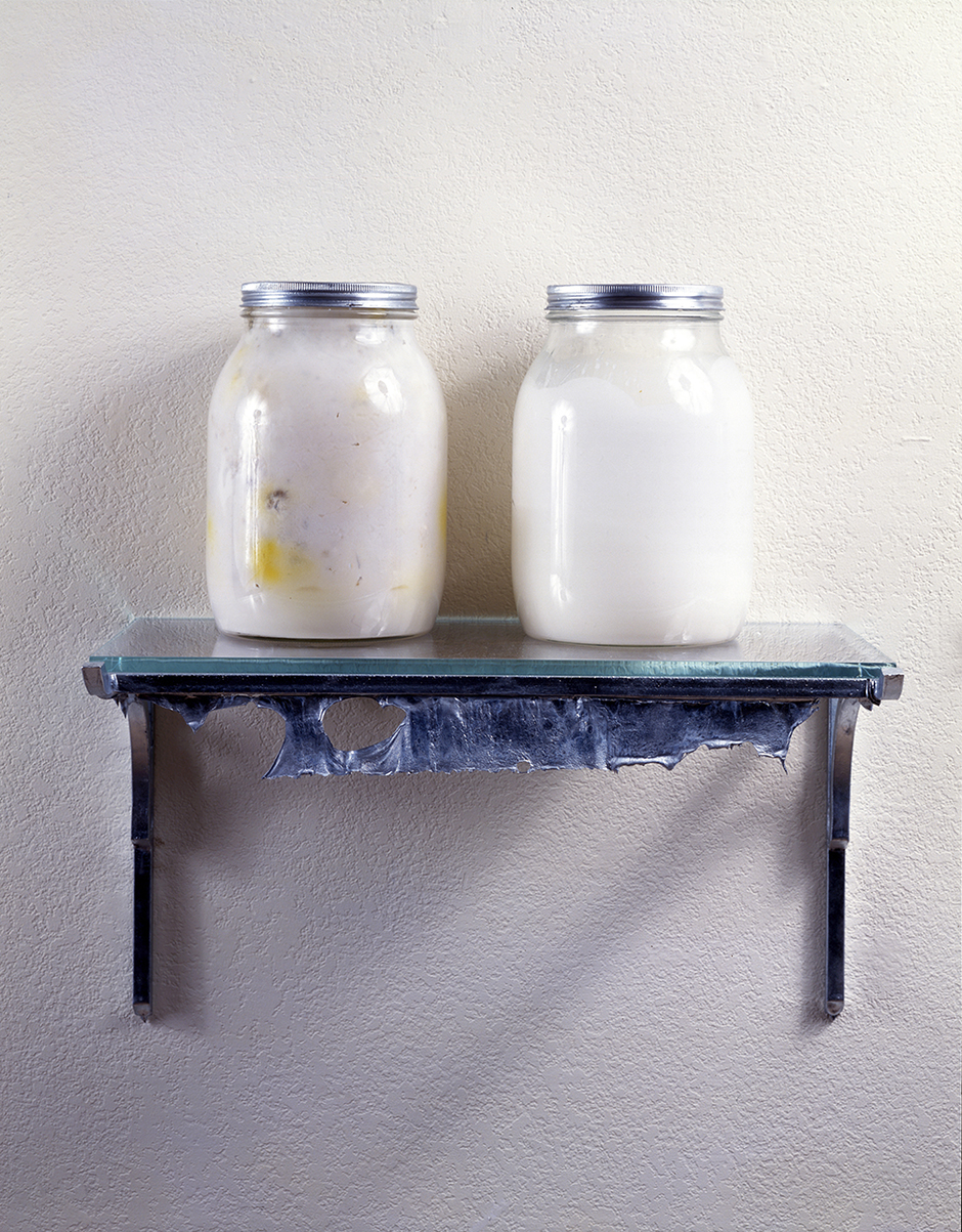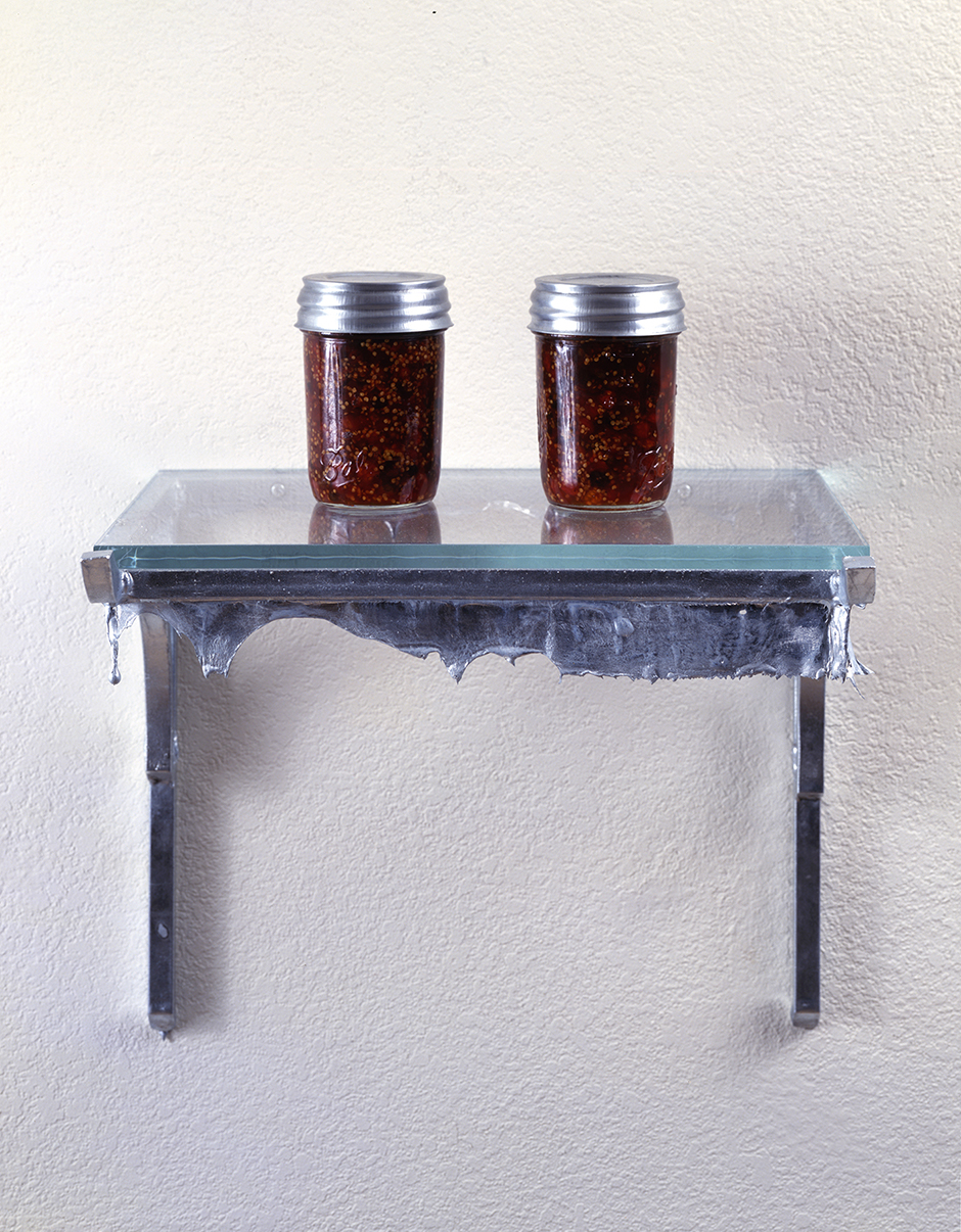 This theme of death, desire, and excess, as well as our complex relationship to nature, is also the basis for subsequent works: Deadly Nightshade Jam (made standard recipe: 4 parts fruits / 3 parts sugar), Enfleurage of Deadly Nightshade (fat based perfume process made summer '93), and Absolutes and Concretes (perfume industry nomenclature: the most reduced and sought- after plant essences available from the perfume industry at very high price). These mimic luxury goods/commodities and refer to things "homemade" or "natural" becoming them.