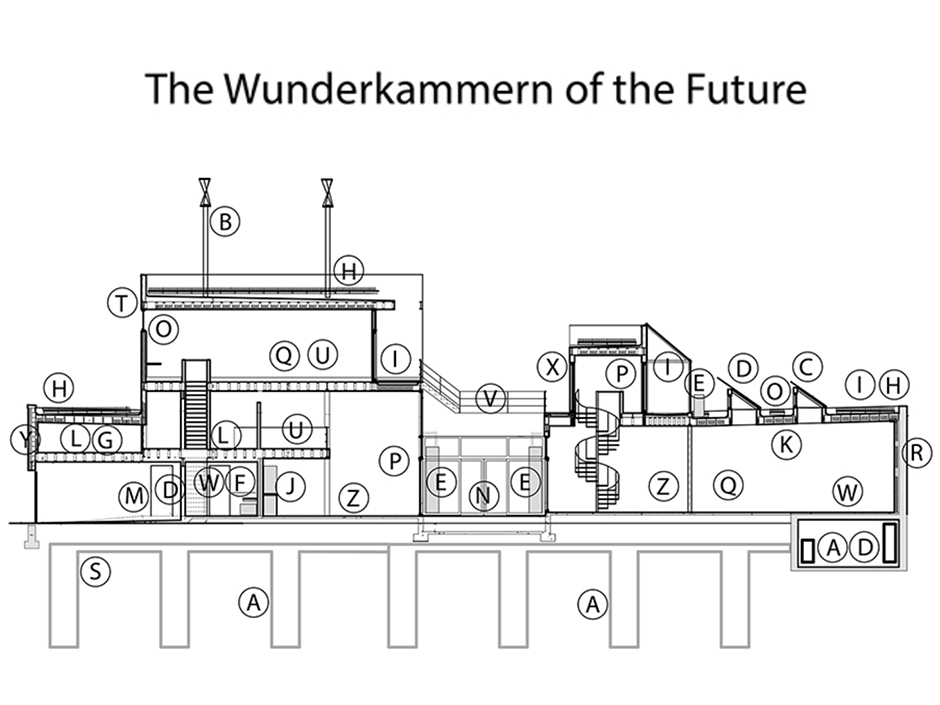 Begun initially as a straight-forward archiecture project, the project transformed during design into a full Art + Design experiment, an example of a BOTH/AND project that has since become a standard principle in Frances Whitehead's urban projects. As BOTH Architecture AND Art, the project eventually became a Wunderkammern of the Future, embracing the encyclopedic, intervening into and challenging the field of architecture.