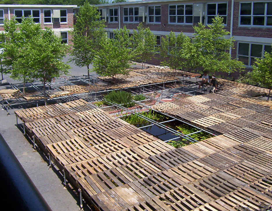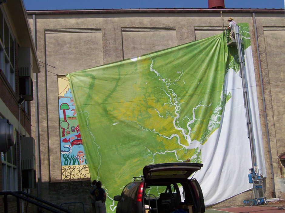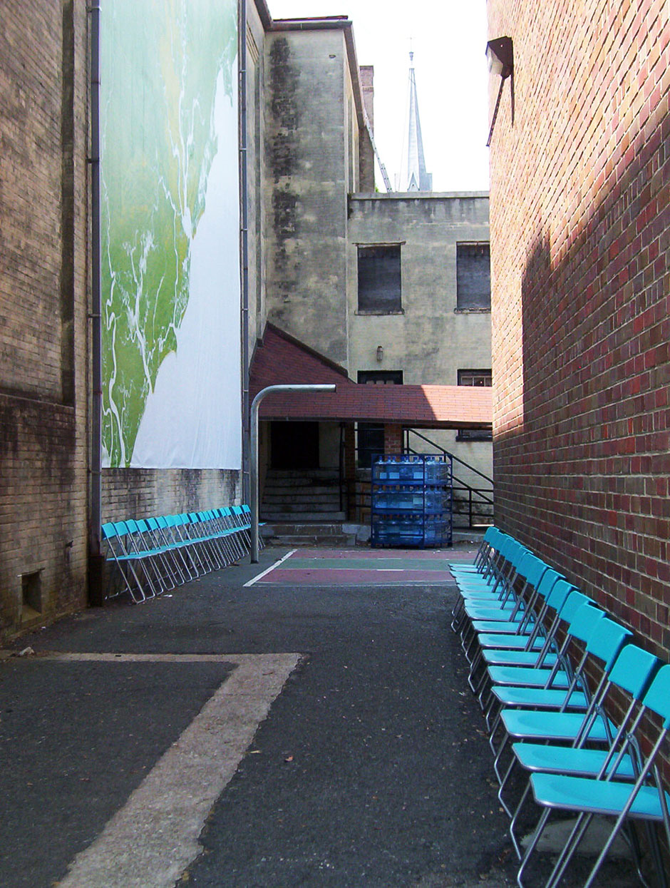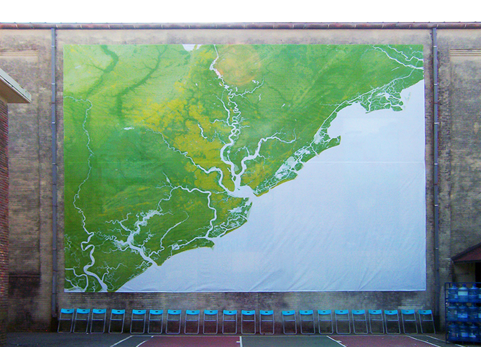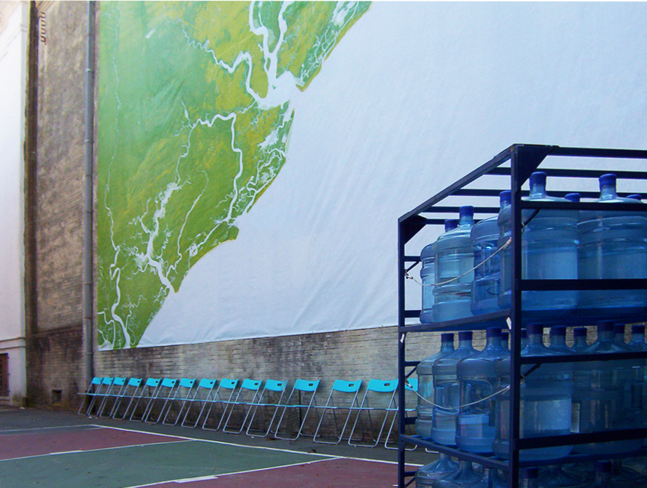 The 2004 Places with a Future program of the Spoleto Festival USA presented Water Table, a living sculpture comprised of over 3000 Carolina Gold rice plants, the most important local heritage strain. Taking the form of a huge raised platform, an open greenhouse and rice paddy, the installation was flanked by a monumental map of the wetlands, the defining landform of the Carolina Lowcountry and the source of Charleston's historic wealth. As both avant gardening and speculative urbanism,Water Table was also a meditation on the changes that will transform the Memminger District, one of the very few neighborhoods to have resisted complete gentrification in downtown historic Charleston.